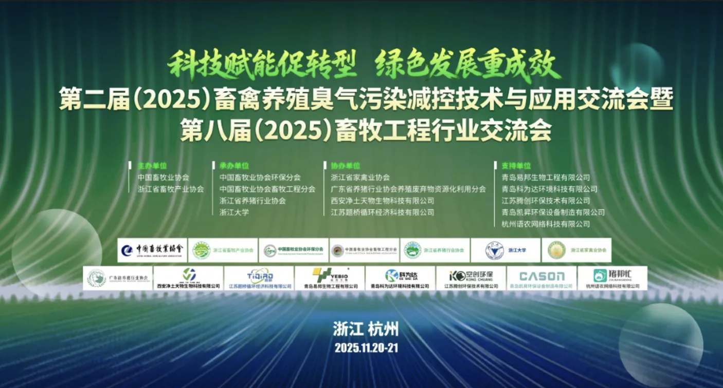 2025年11月21日,第二届(2025)畜禽养殖臭气污染减控技术及应用交流会暨第八届畜牧工程行业交流会在杭州成功召开。本次会议以“技术创新赋能绿色养殖,协同推进臭气污染减控”为主题,由中国畜牧业协会与浙江省畜牧产业协会联合主办,中国畜牧业协会畜牧工程分会、环保分会、浙江省养猪行业协会及浙江大学共同承办。广西兽医生物技术重点实验室依托单位广西兽医研究所派出4名科研人员参加了此次会议。