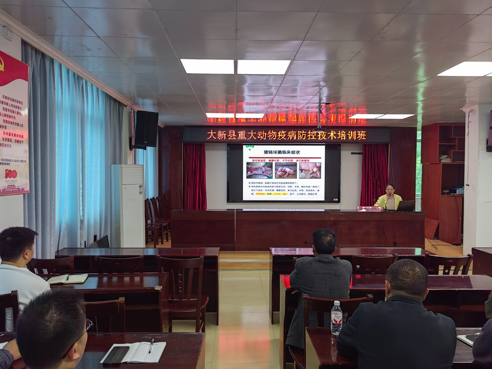 本次培训聚焦非洲猪瘟及人畜共患病防控技术,紧密结合边境地区防疫工作实际需求,围绕小散养殖户非洲猪瘟防控技术要点,专家用通俗易懂的语言介绍了非洲猪瘟的传播途径、防控措施等内容;针对猪链球菌病、布鲁氏菌病、狂犬病等人畜共患病,结合实例详细讲解科学防控策略及人员防护要点。